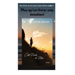 Tous Les articles "Addiction garantie." Vos avis "Quel plaisir encore une fois de retrouver la plume de Lyvia [...] c’est pire que des M&M’s tellemen... "Lyvia signe l’une de ses plus belles histoires." Vos avis "Avec ce quatrième roman, Lyvia signe l’une de ses plus belles histoires." Sylvain... "Lyvia Palay fait partie de ces autrices qui laissent une empreinte. Et celle-ci est indélébile." Vos avis "Il y a des lectures qui vous marquent et dont vous vous souvenez des années plus tard."... Prendre le temps pour admirer ce qui nous entoure. Posts passions Prendre le temps pour admirer ce qui nous entoure.... CETTE PARTIE DE MOI : UN MAGNIFIQUE ROMAN SUR LA RECONSTRUCTION Vos avis "Comme toujours sous sa plume, les personnages sont touchants et font preuve d’une profonde humanité... Je vous présente Laetitia, personne formidable et correctrice de mes romans Mes livres "L’objet livre est tout aussi beau et très travaillé, la couverture est sublime et la mise en page d... CETTE PARTIE DE MOI dans le TOP 9 de 2025 d'un lecteur ! Vos avis Voir mon roman CETTE PARTIE DE MOI dans le top 9 de l'année 2025 d'un lecteur est extrêmement toucha... JOUR DE SORTIE NOUVEAU ROMAN : CETTE PARTIE DE MOI Mes livres Ça y est, mon nouveau roman CETTE PARTIE DE MOI est disponible ! 🥰 🖋️ C'est un roman contemporain ... DATE A RETENIR : TARGON (33) 21-11-25 Rencontres & Dédidaces RENCONTRE DÉDICACES EN BIBLIOTHÈQUE à TARGON le 21-11-25 à partir de 18h30 🖋️📚... Mère Noël ! Mes livres ... Ce que j'aime aussi, c'est offrir des émotions. Et c'est ce que je fais au travers de mes romans... SALON DU LIVRE DE St ANTONE SUR L'ISLE 12-2025 Rencontres & Dédidaces Pour ce dernier salon de l'année, j'ai été touchée de rencontrer de nouveaux futurs lecteurs, j'aime... Rencontre dédicaces bibliothèque de Targon 21-11-25 Rencontres & Dédidaces Le ven. 21-11-25, j'ai eu la joie d'être accueillie par Anne-George et Patricia, les adorables bibli... 1 2 3 4 5 > >>